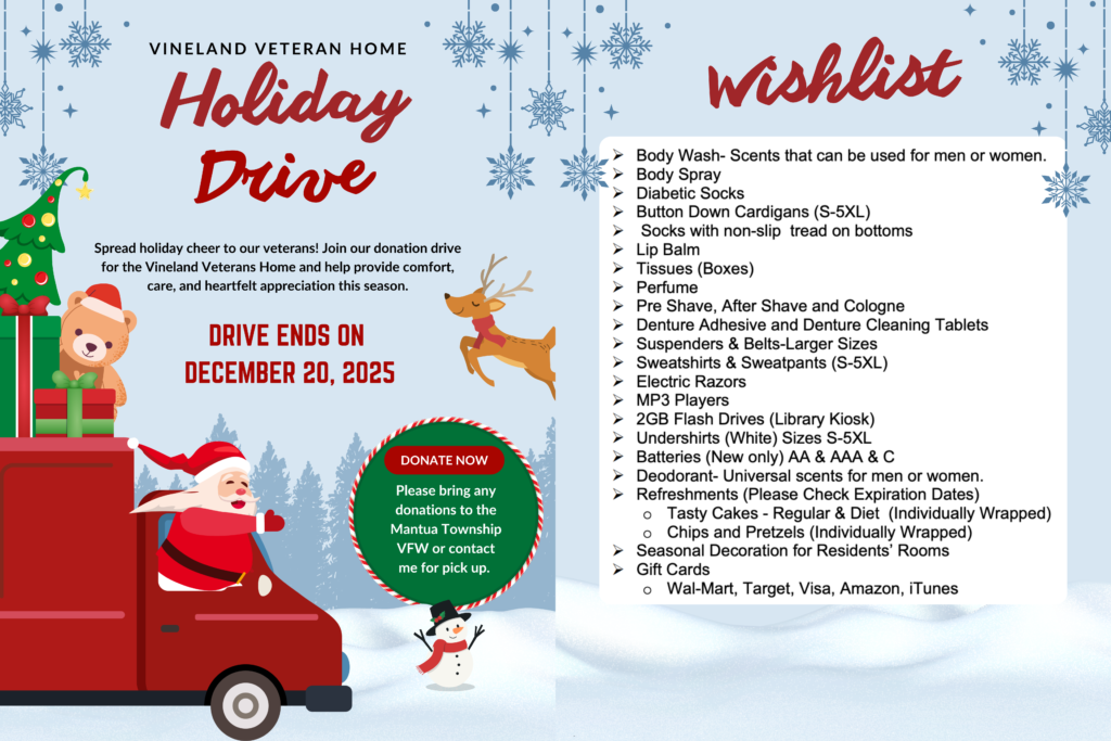 Holiday Donation Drive for Vineland Veterans Home